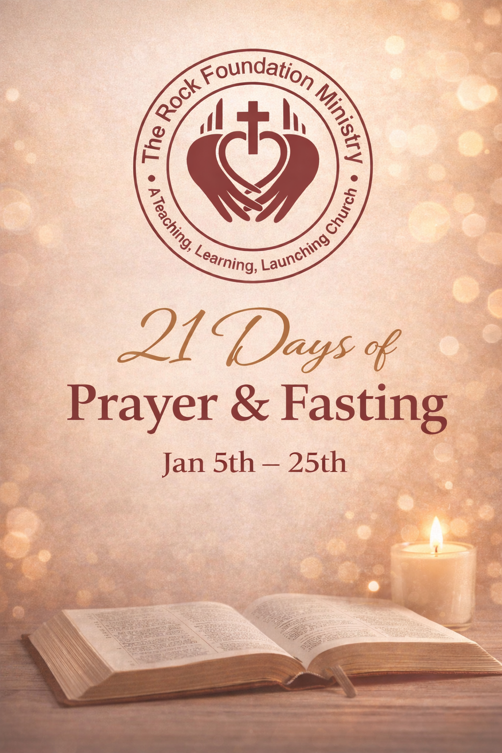 PRAYER, FASTING & CONSECRATION January 5th – January 25th Join us as we set aside 21 days to seek God