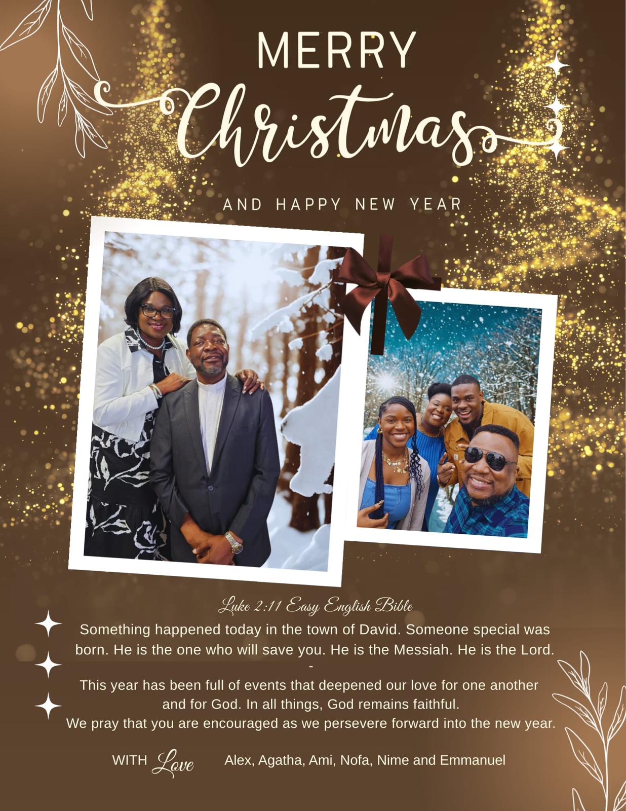 Wishing you a Merry Christmas and a Happy New Year from our Pastor and First Family to you and your